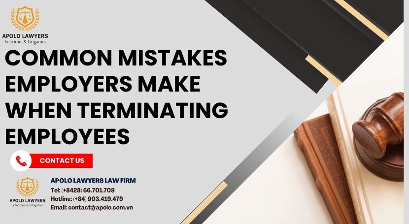 Terminating an employee is a sensitive and legally complex process. While employers may believe they are acting within their rights, mistakes made during termination can lead to wrongful dismissal claims, reputational damage, and costly legal disputes. Understanding common errors helps employers comply with labor laws, maintain professionalism, and reduce legal risks. Please contact Apolo Lawyers via email at contact@apolo.com.vn or Hotline (+84) 903 419 479 for the best advice and support.