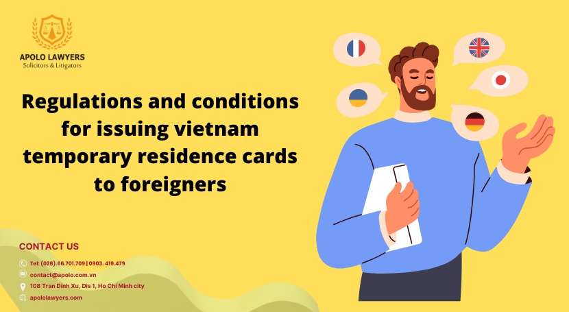 The topic of "Regulations and Conditions for Issuing Vietnam Temporary Residence Cards to Foreigners" is essential for anyone looking to live or work in Vietnam. These cards serve as a legal document that allows foreigners to stay in the country for an extended period. Understanding the specific regulations and requirements is crucial for a smooth application process. This includes eligibility criteria, necessary documentation, and the different types of Vietnam temporary residence cards available based on various purposes such as work, investment, or family reunification. By familiarizing themselves with these conditions, foreigners can ensure compliance with local laws and enjoy their stay in Vietnam more fully. In case you need advice, please contact Apolo Lawyers via email at contact@apolo.com.vn or hotline: (+84) 903 419 479 for the best advice and support.
